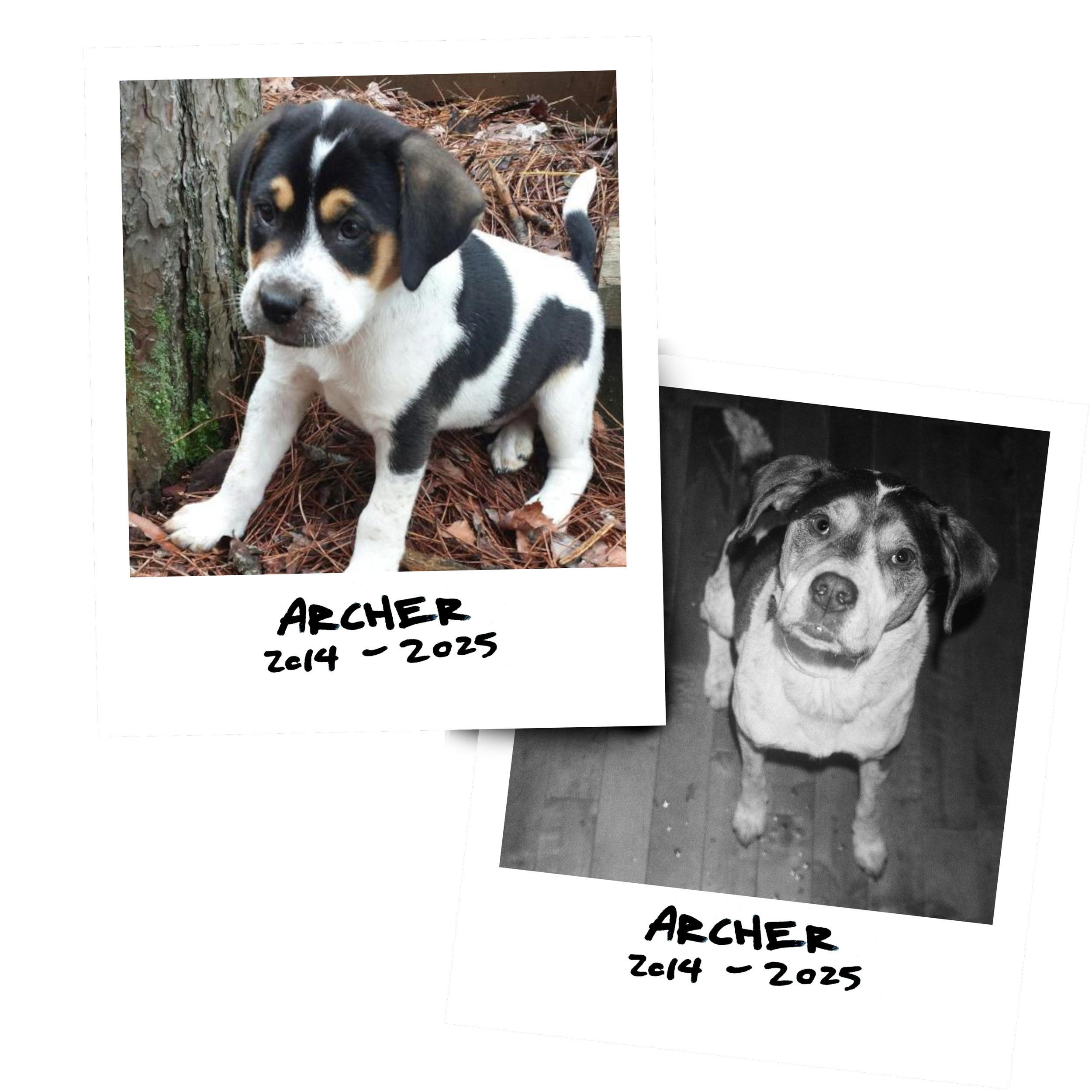 As many of you know, our beloved dog Archer passed away suddenly in December. We certainly thought he would be present on our wedding day, running around Juniper Hill Farm and trying to steal pizzas. You will notice images of him included in our design, thanks to our talented friend Madison Van Rijn. We will be thinking of him on this day, as we do every day. We appreciate your memories of him and to be together in missing him on our special day.